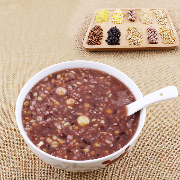 材料:荞麦、薏米、黑米、芡实、脱皮绿豆、糙米、红豆、麦仁、粳米、红枣、桂圆
